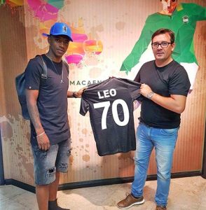 Atleta, cria de Macaé, pousou ao lado do presidente do Verdão, Rodrigo Santos, antes de embarcar rumo ao futebol Asiático – Divulgação/ Serra Macaense