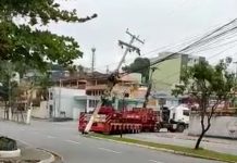 Bairro ficou sem energia após o veículo de carga colidir no poste de iluminação