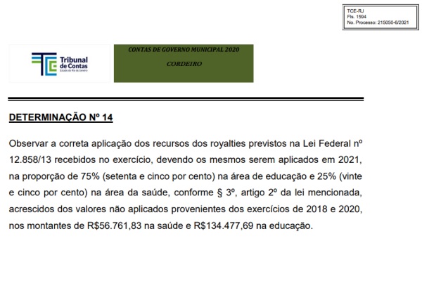 Tampouco informou que a cidade está desrespeitando determinação expressa do Tribunal de Contas do Rio de Janeiro, que, em relatório publicado no ano passado, expressamente advertiu o município para que não gastasse dinheiro dos royalties do petróleo com qualquer outra coisa que não fosse saúde ou educação.