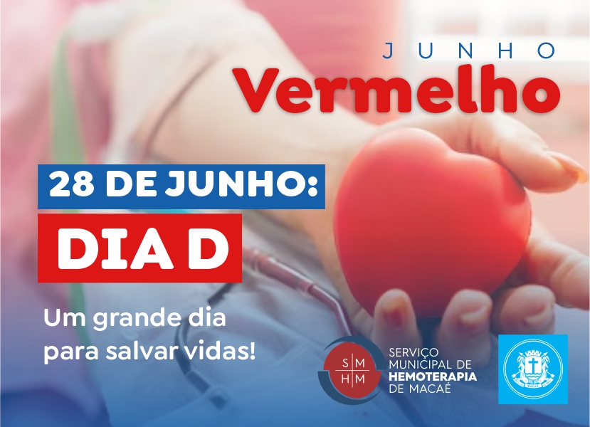 Com ações importantes sobre a doação de sangue, o mês de junho está chegando e envolverá todo o país em ações que vão levar à população informações sobre o ato nobre que salva vidas e demonstra amor e respeito ao próximo: a doação de sangue. As ações que acontecerão durante o período, vão culminar em 28 de junho, o Dia D da campanha.