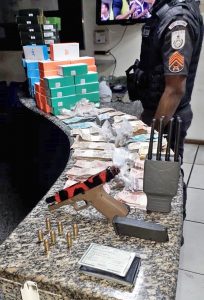 Mercadorias e dinheiros que seriam roubadas por criminosos foram resgatados pela Polícia Militar e levados para a 128ª DP de Rio das Ostras – Divulgação