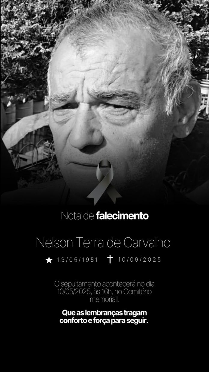 Na manhã desta quarta-feira faleceu Nelson Terra de Carvalho, conhecido como Terrinha, durante uma cirurgia cardíaca.