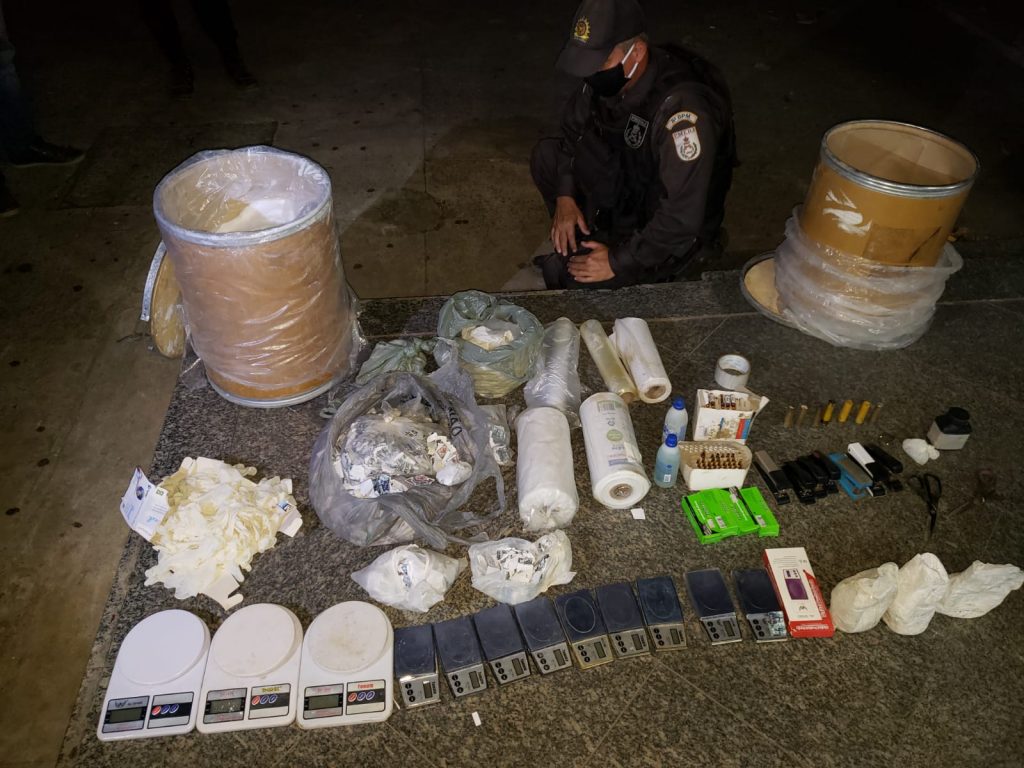 Ao chegar no local, um homem , – que não teve a identidade divulgada -, foi encontrado e com ele havia dois quilos e meio de cocaína , uma balança de precisão, um liquidificador industrial e material para endolação.