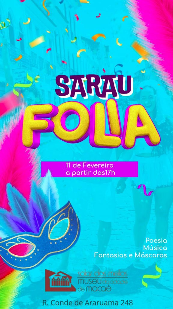O clima de carnaval vai tomar conta do Solar dos Mellos nesta quarta-feira, 11 de fevereiro, a partir das 17h, com a realização do Sarau Folia, um encontro cultural que reúne poesia, música, fantasia e celebração popular.