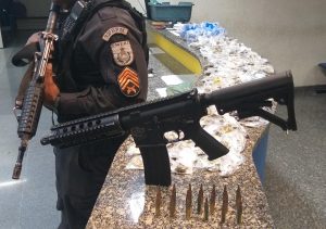 Militares apreendem fuzil, munições, drogas, durante confronto na comunidade das Malvinas – Divulgação/PM