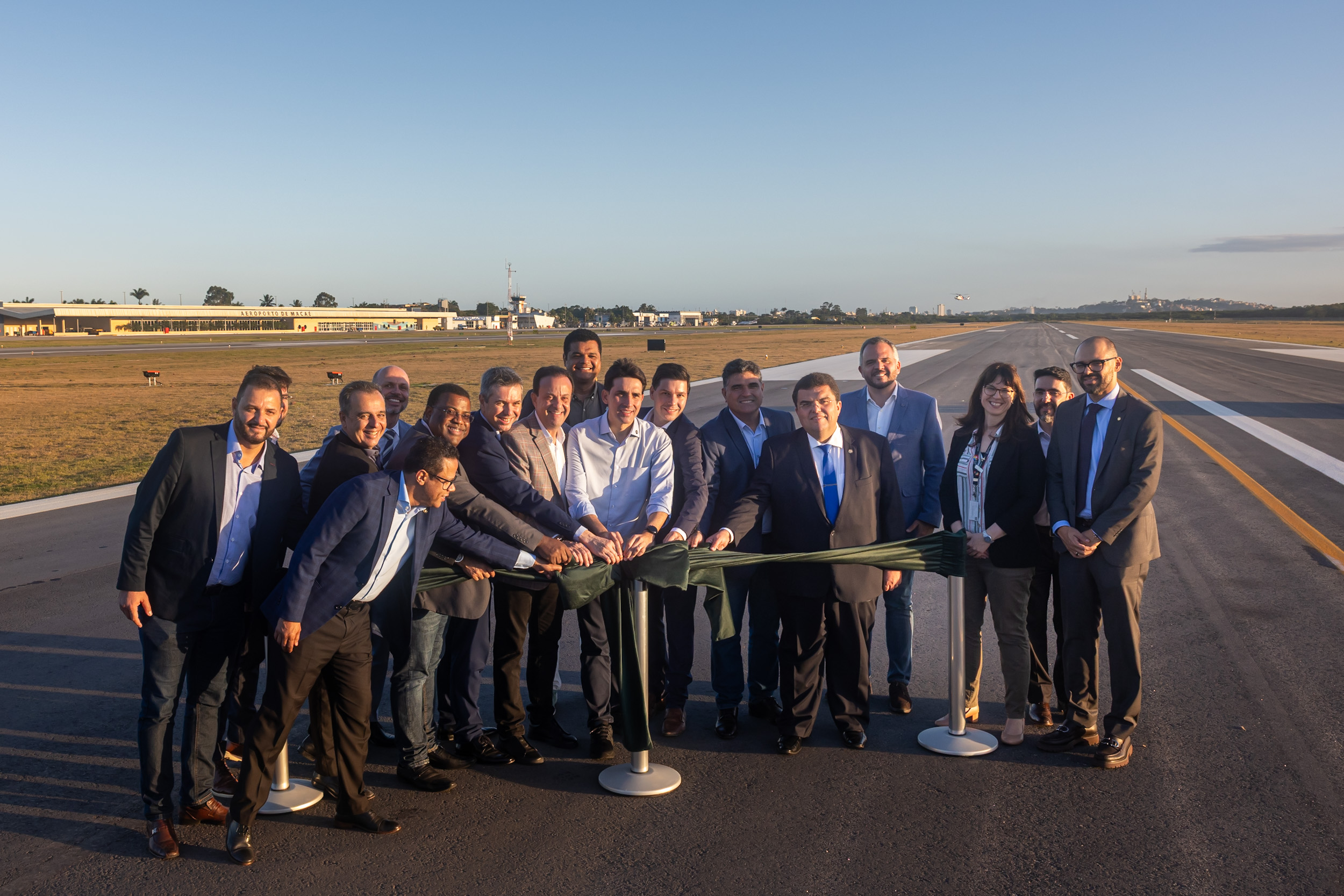 A obra iniciou em junho de 2023 e foi concluída em dezembro de 2024, 6 meses antes do prazo de 2 anos estabelecido no contrato de concessão. Para isso, a concessionária suíça ampliou o investimento na construção e desenvolveu estudos para otimizar processos no planejamento e execução da obra. Em janeiro deste ano iniciou o processo de homologação da nova pista junto à ANAC, concluído em abril de 2025.
