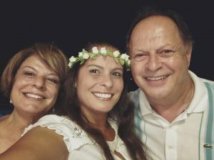 A aniversariante Beth, em clima especial junto ao marido Irani e a filha Carolina
