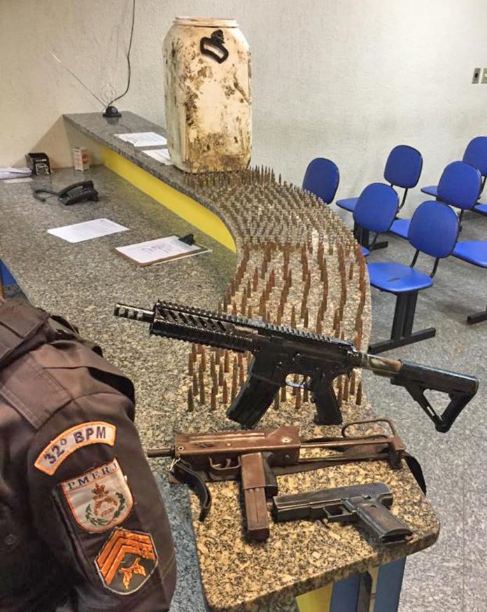 Dois dias depois, a PM apreendeu um fuzil, submetralhadora e munições dentro de um tonel, em um mangue, na Comunidade Nova Holanda, na tarde de última quinta-feira (5).
