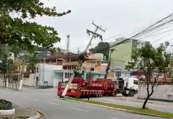 Uma carreta que transporta carga offhore colidiu em um poste de iluminação, na manhã desta sexta-feira (3), por volta das 9h30min, na Avenida Prefeito Aristeu Ferreira da Silva, no bairro Novo Cavaleiros.