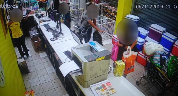 A ação durou um pouco menos de 10 minutos e foi o suficiente para fazer ‘arrastão’ na loja, de onde levaram dinheiro e aparelhos de celular. Segundo informações das vítimas, clientes e funcionários que estavam dentro do estabelecimento, foram ameaçados a todo momento.