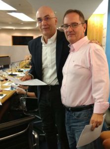 Presidente da Federação de Conventions Bureaux do Rio entrega carta assinada ao presidente da Fecomércio-RJ