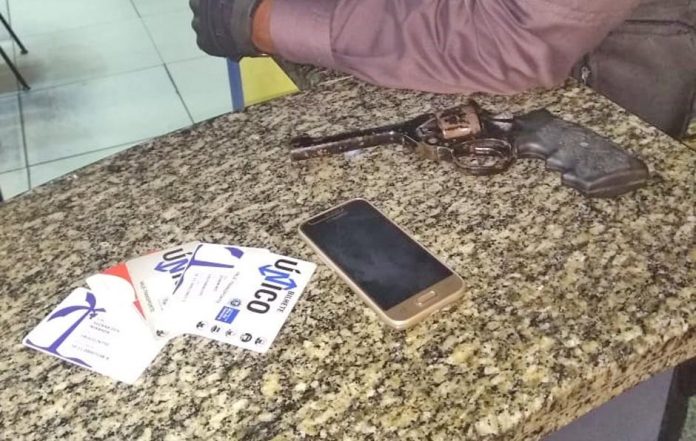 O suspeito foi identificado como Marcos Vinicius da Conceição Ribeiro, de 21 anos, e com ele foi encontrado um revólver calibre 38, um aparelho celular, que foi confirmado ser de uma vítima, e uma mochila com vários cartões de Bilhete Único e passe da Prefeitura de Macaé.