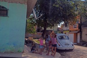 De acordo com os moradores, a única opção das crianças e adolescentes é a rua. A nossa equipe encontrou algumas brincando entre os carros, podendo ser atropeladas.